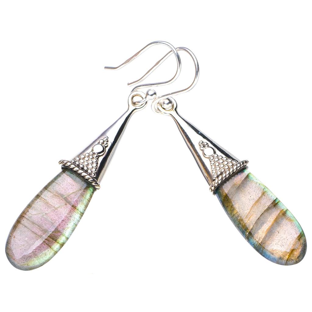 StarGems® Natural Blue Fire Labradorite Handmade 925 Sterling Silver Earrings 2" E5731