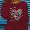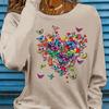 Топы для женщин с принтом в виде летящей бабочки, круглым вырезом и длинным рукавом, футболка на осень, облегающий женский топ с длинным рукавом