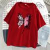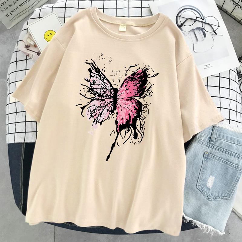 Розовая футболка с бабочкой Harajuku, женская повседневная дышащая футболка в стиле хип-хоп с коротким рукавом, хлопковая крутая футболка большого размера