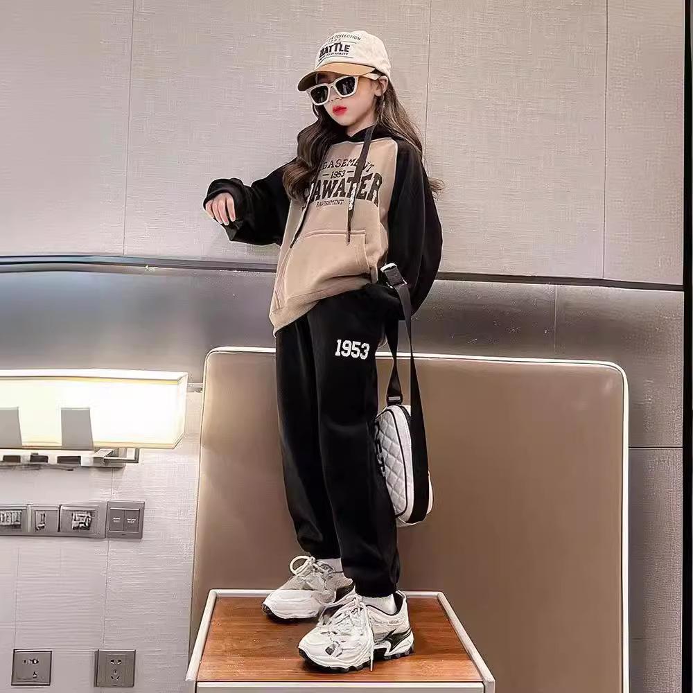 Костюмы-свитера с капюшоном для девочек, детская одежда, большие дети, девочки, свободный западный стиль, корейская весенняя и осенняя одежда
