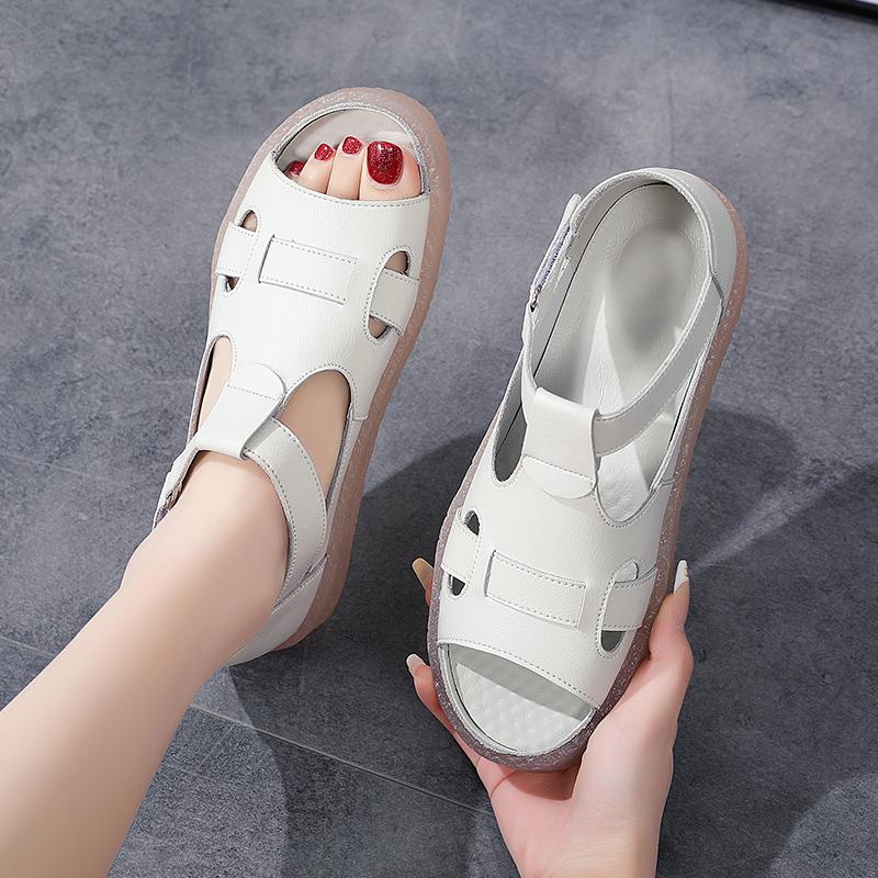 Женские сандалии, летние базовые туфли Mary Jane, пляжная обувь на плоской подошве, с открытым носком, большие размеры, повседневные мягкие прогулочные бежевые сандалии, большие размеры