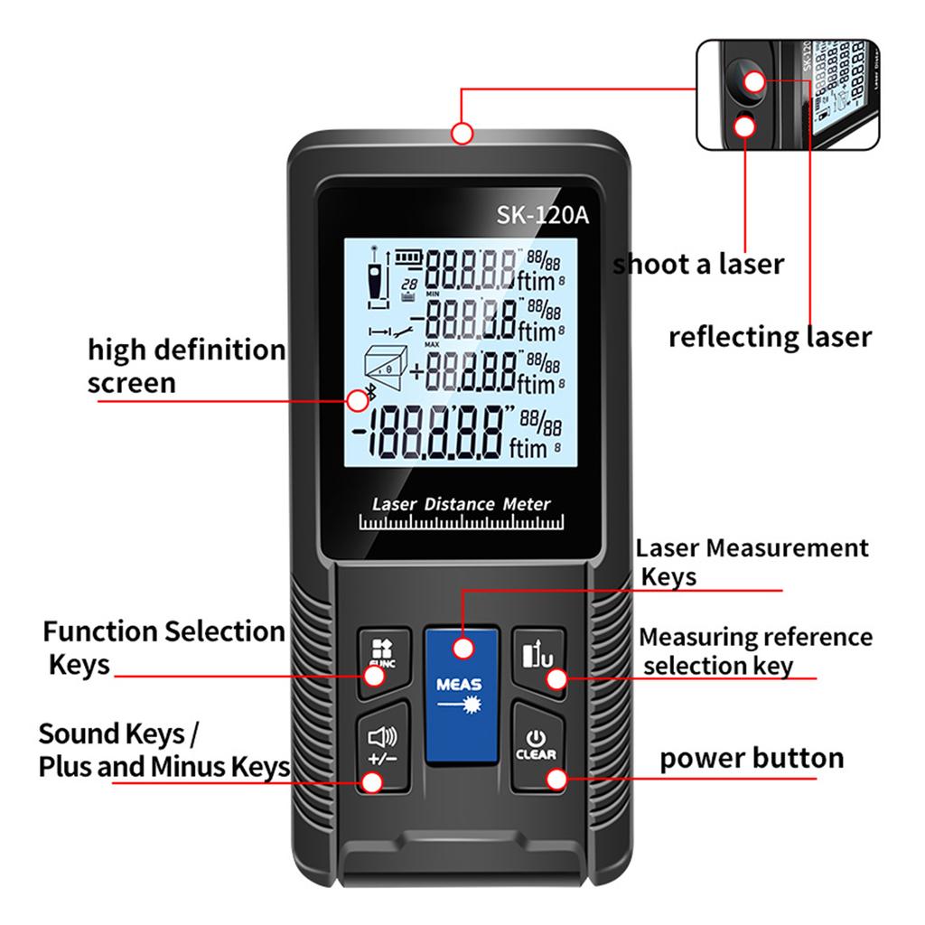 Ручной лазерный дальномер 40 м 50 м 70 м 100 м 120 м Цифровой sFinder Рулетка Линейка Тестовый инструмент Лента для измерения расстояний
