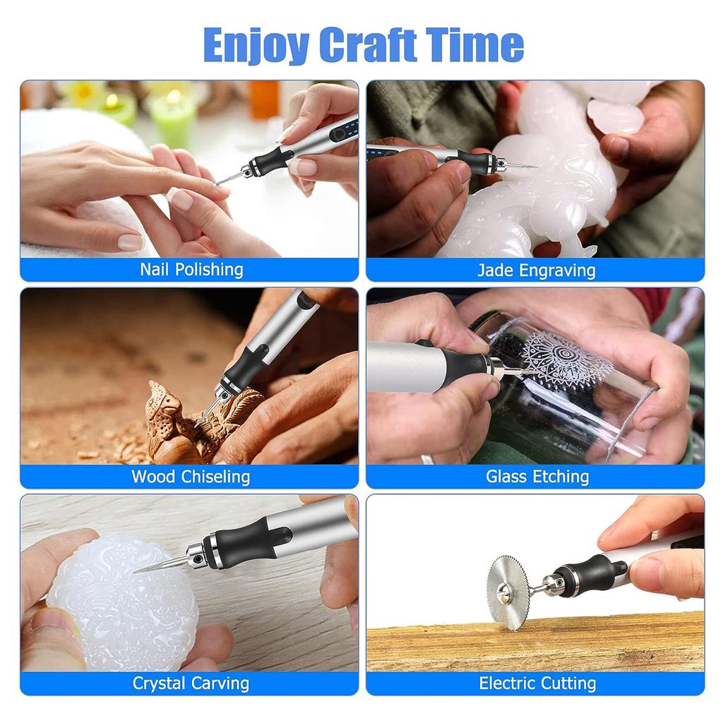 Портативный и компактный, поэтому вы можете взять его куда угодно. Он может работать с различными материалами, включая металл, стекло, кожу, дерево, ювелирные изделия, камень и статуи, так что вы можете наслаждаться временем, занимаясь изготовлением ювелирных изделий с помощью ручной дрели, где бы вы ни находились.