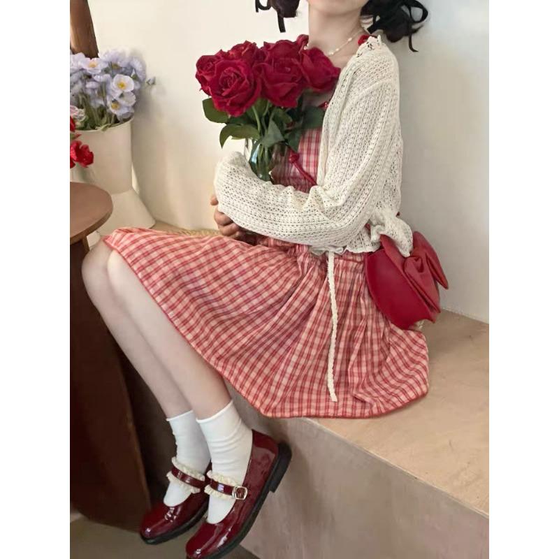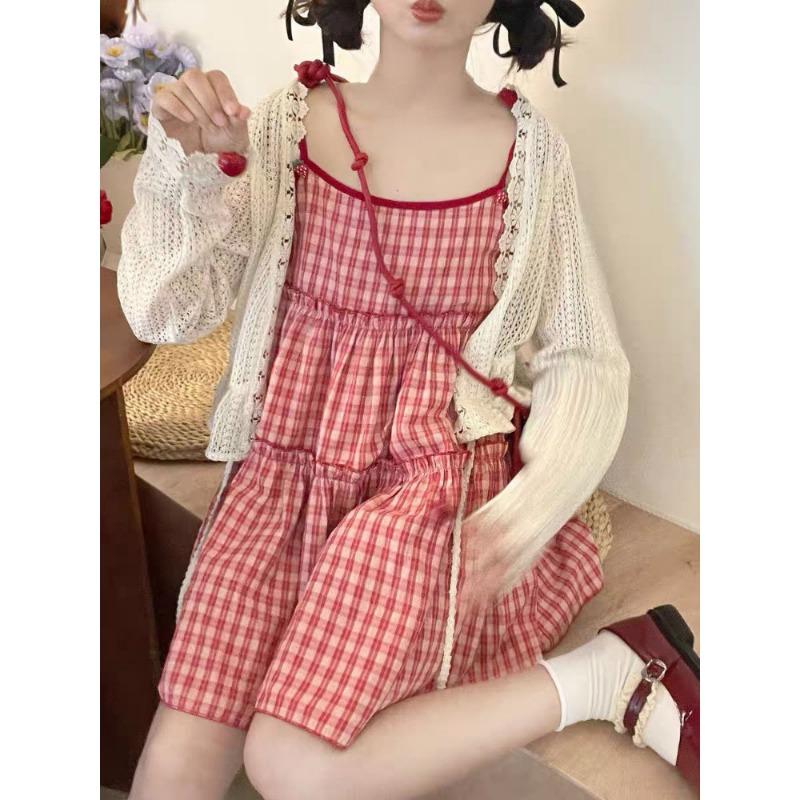 Японское платье Лолиты Kawaii, женское, милое, красное, клетчатое, вечернее, мини-платье, женское, корейское, модное, свободное, платье принцессы Y2k, новое, осенью