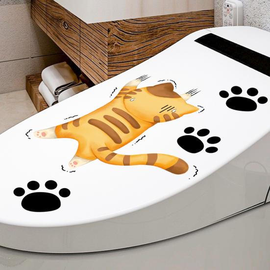 Наклейка на унитаз с мультяшным котом, съемная самоклеящаяся водонепроницаемая наклейка из ПВХ для гостиной, ванной комнаты, стены искусства, украшение для крышки унитаза с лапой котенка
