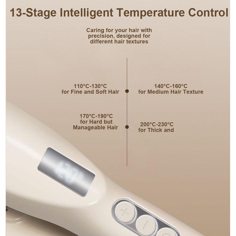 • Контроль температуры :Этот прибор для укладки волос оснащен цифровым регулятором температуры, что позволяет вам настраивать уровень нагрева в соответствии с вашим типом волос и потребностями укладки.