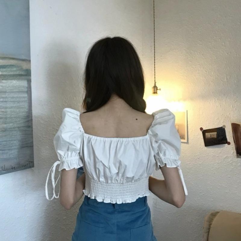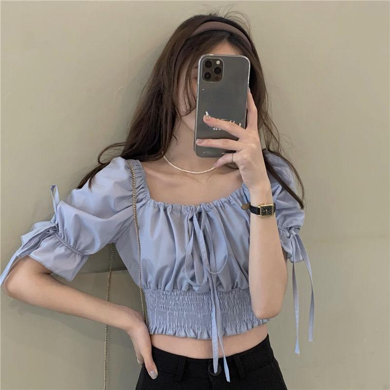 Блузки женские летние однотонные ретро повязки дизайн тонкий сексуальный укороченный топ популярная мода корейский стиль женские элегантные новые студенческие Ins