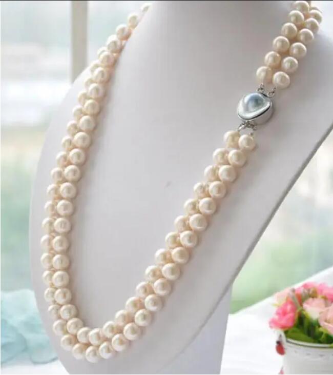 Женский подарок слово Любовь Новый 2-рядный 8-9 мм белый круглый белый ЖЕМЧУГ ожерелье mabe 17-19 дюймов