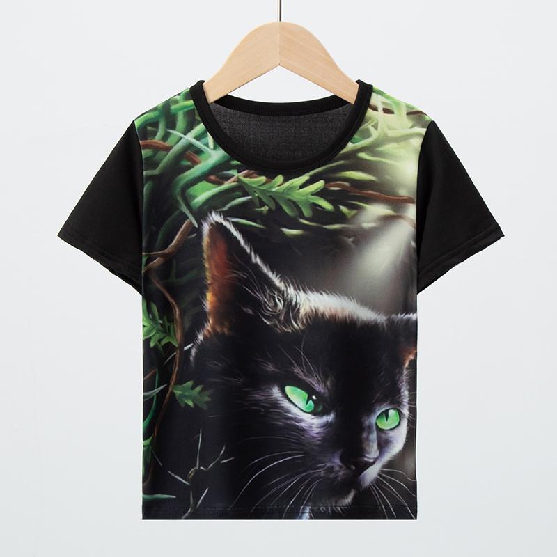 Летняя детская тонкая 3D цифровая печать с короткими рукавами и красивым рисунком кота, повседневная футболка с джокером для мальчиков и девочек