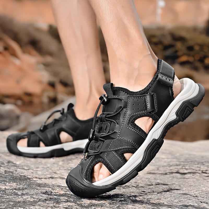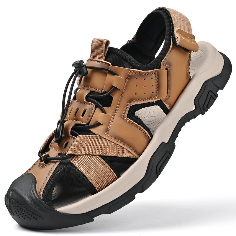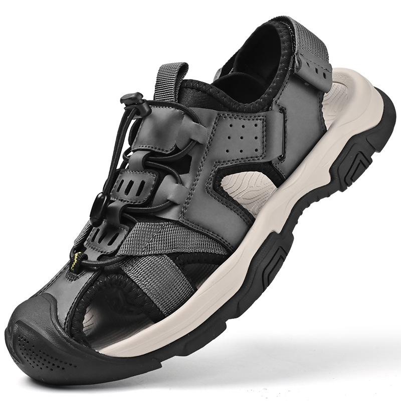Сандалии с закрытым носком, мужские кожаные летние дышащие полые уличные туфли, легкая непромокаемая уличная повседневная пляжная обувь