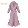 Осенне-весеннее женское платье с тонкой талией и длинными рукавами, однотонное платье с отворотом и v-образным вырезом, однотонное платье макси для свиданий
