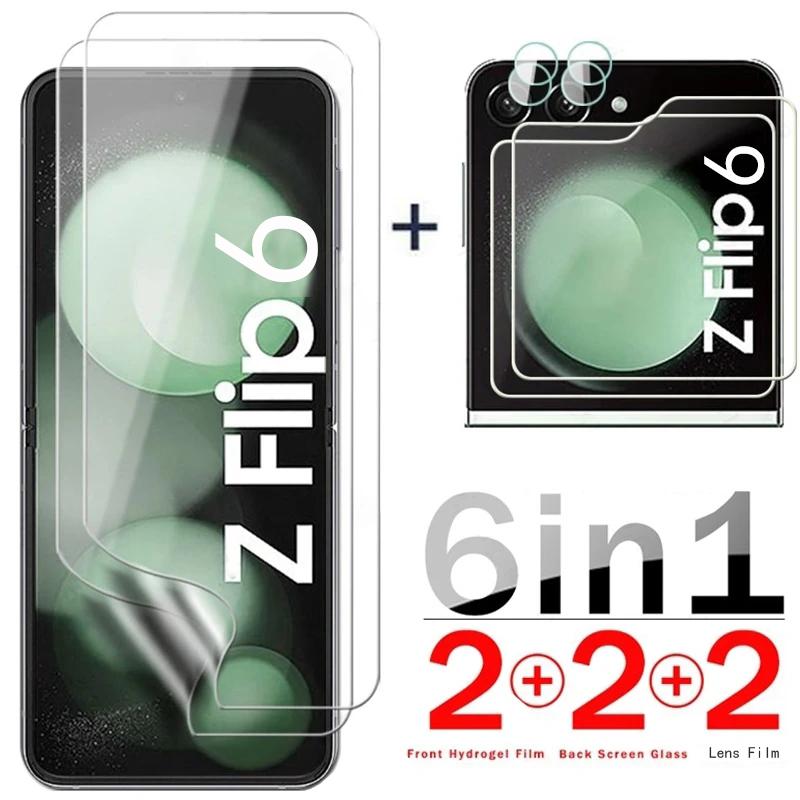 2+2+2 6 шт. Flip 6 HD закаленное стекло маленький протектор экрана + мягкая гидрогелевая пленка + пленка для объектива для Samsung Galaxy Z Flip 6 / Flip 5 5G прозрачная защитная