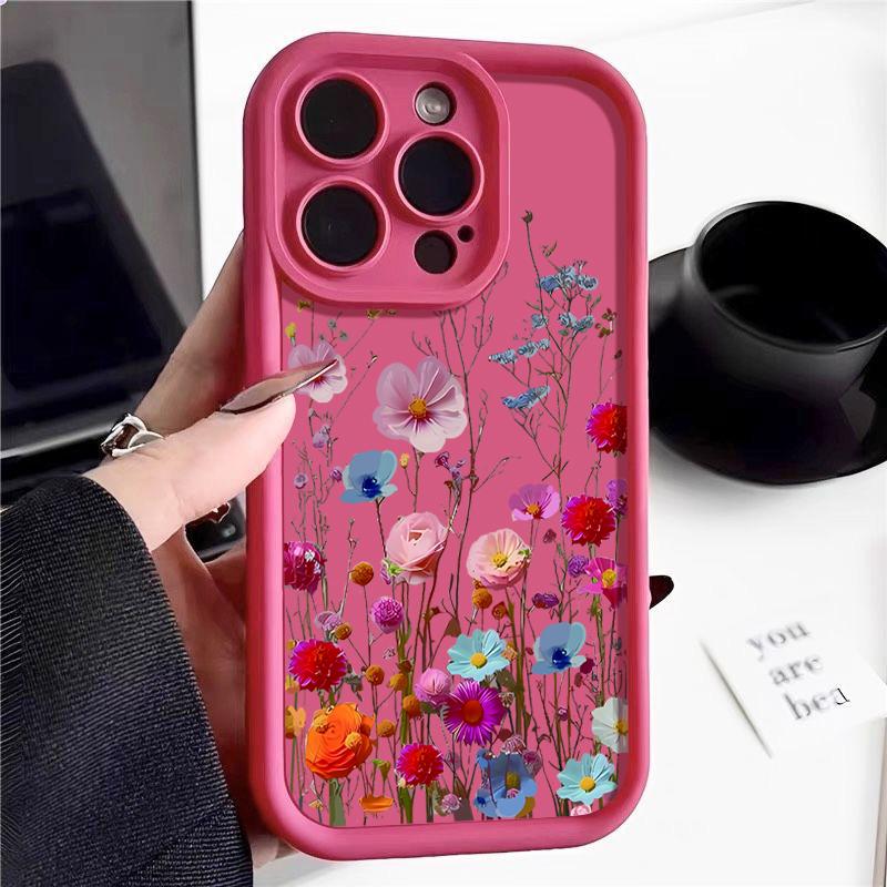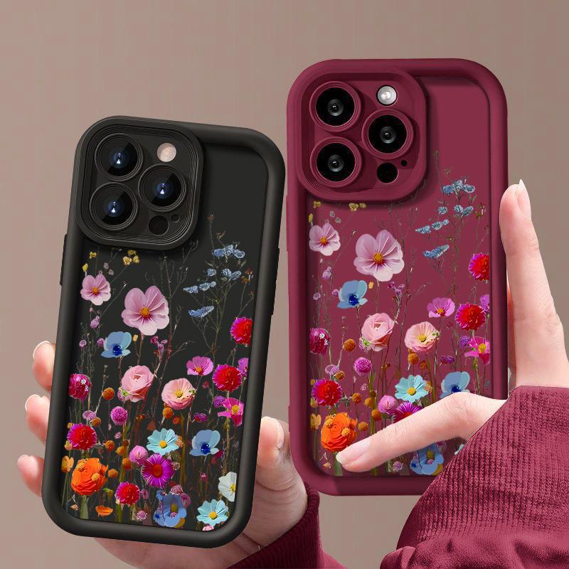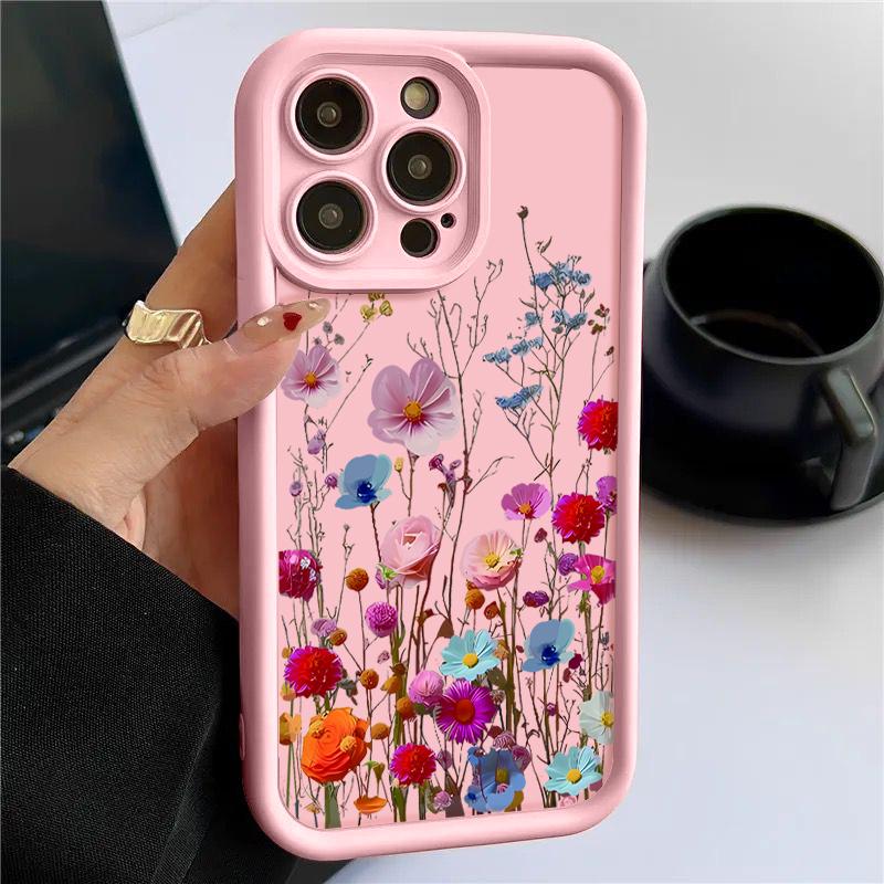 Чехол с цветочным принтом для iPhone 16 Pro Max 15 14 Plus 13 12 Pro 11 XR XS 8 7 цветов, матовый противоударный чехол для защиты линз, мягкий чехол из ТПУ