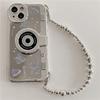 Для iPhone 14 Plus чехол с гальваническим покрытием, цветочный узор, дизайн камеры, чехол для телефона из ТПУ с ремешком-тоут - розовый цветок