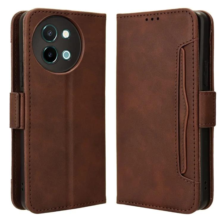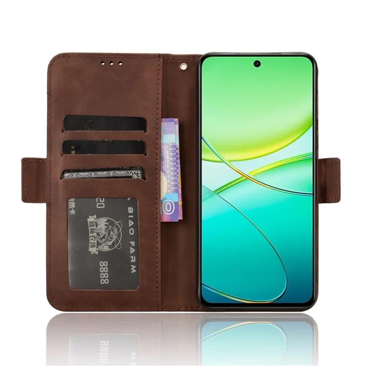 Для vivo Y38 5G / Y200i 5G / Y58 5G чехол из кожи с защитой от царапин и несколькими слотами для карт - коричневый