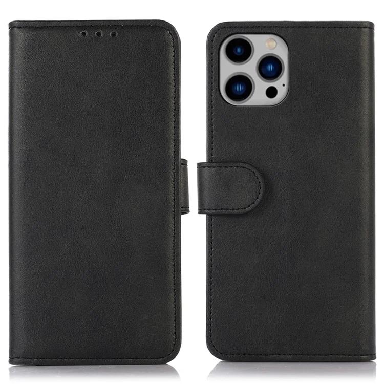 For iPhone 16 Pro Case Cowhide Texture Leather Wallet Phone Leather Cover - Black