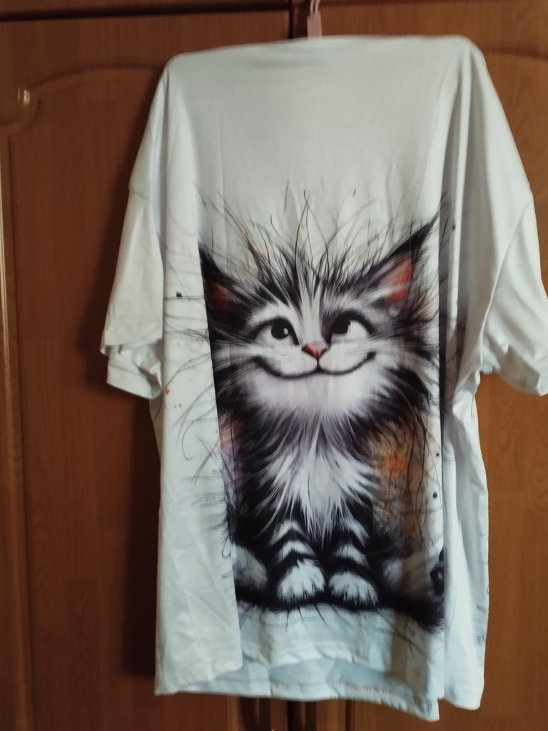 пришла футболка, но почему-то рисунок не кот, а пчела, хорошо хоть сама футболка 👚👚 нормальная, дома пойдёт носить, уже не в первый раз присылают не то , что выписываю, в следующий раз попробую выписать ещё раз этого кота, может наконец-то пришлют то что хотела. Дополняю:футболка 👚👚👚 нормальная буду носить дома, т.к. я вообще-то хотела другую, а по размеру подошло.