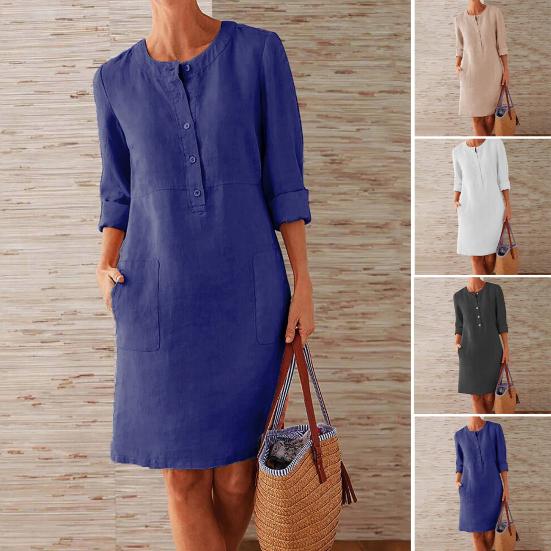 Универсальность случая: Это платье из хлопка и льна подходит для различных случаев, от офисных встреч до прогулок на выходных, например для летних вечеринок, пляжного отдыха, походов по магазинам или случайных встреч..