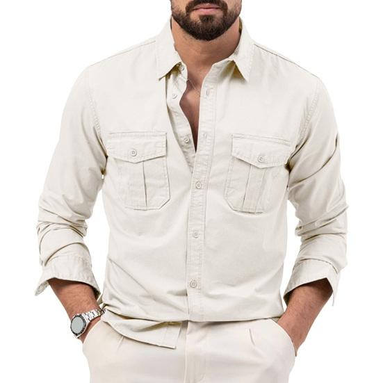 Стиль: Ощутите непринужденную элегантность с этой мужской винтажной рубашкой с классическим однобортным лацканом и вневременным однотонным дизайном, которая идеально подойдет для того, чтобы легко дополнить ваш повседневный образ.