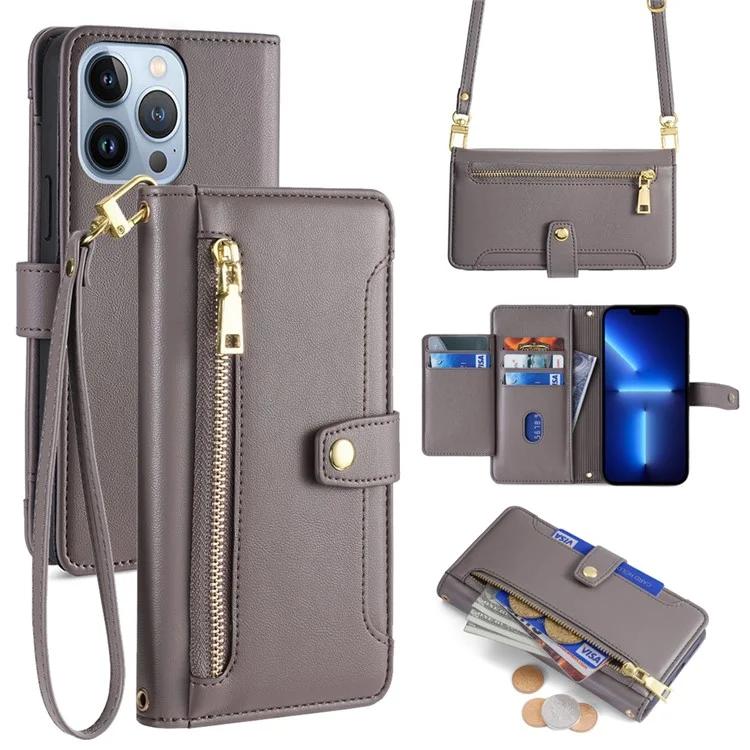 Для iPhone 13 Pro 6,1-дюймовый чехол для мобильного телефона с карманом на молнии, кожаный чехол с защитой от падения и 2 ремнями
