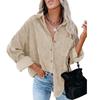 Хлопковая Повседневная вельветовая блузка женская в полоску размера плюс женская рубашка-куртка винтажная пуговица с карманом свободные модные блузки топы 17787