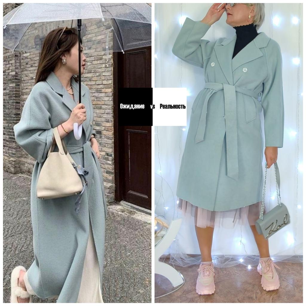 Пальто "мягкое облако" 🤍 Привет! Какое же оно крутое! Невероятный цвет, нежность ткани, ощущения себя в нем просто кайф😍 Пальто дарит комфорт, тепло, негу и красоту! Однозначно станет любимым! ‼️Добавила разговорное видео, посмотрите перед покупкой‼️ Ткань: На этикетке значится (дословный перевод) : Двухстронее шерстяное пальто: Polycool Fiber 78.5% Вискоза 12.8% Шерсть 8.7% Что по ощущениям? Мягкая чуть ворсистая ткань одинаковые ощущения с двух сторон. Лёгкая, нежная, тёплая. Дизайн: Пальто застегивается на три пуговицы, одна из пуговиц находится внутри. В комплекте есть широкий пояс. Линия плеч отсутствует, рукава широкие, есть карманы по бокам. Сезон: Весна/осень (температурный режим от +7 и выше). Размер : На мне XL Мои параметры : рост 172 см 98/76/106 см Детали: Длина 107 см Длина рукава 71 см Плечи - нет ОГ 114 см ОТ 108 см ОБ 114 см Резюмирую: Отдельное слово хочется сказать про цвет он такой сложный серо - голубой. Очень красивый дорогой оттенок. Я однозначно пальто рекомендую! Берите не пожалеете! Я не прощаюсь, M_K #пальто_облако