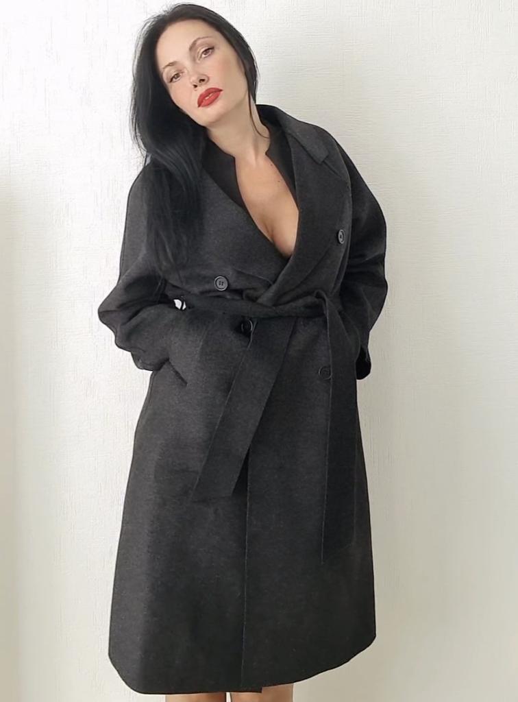 Пальто. 💎Двубортное пальто выполнено из кашемира с высоким содержанием шерсти. 💎Модель прямого кроя дополнена поясом в тон. 💎Детали: воротник, застежки на пуговицах, 2 кармана с внешней стороны, гладкая подкладка. 💎Я рада покупке, ткань натуральная, вес есть. Оно супер)!! Спасибо Джум💓