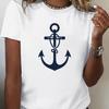 2024 новая стильная футболка для женщин, топ с принтом якоря, летние футболки большого размера для женской одежды, женская мода с круглым вырезом, большие размеры