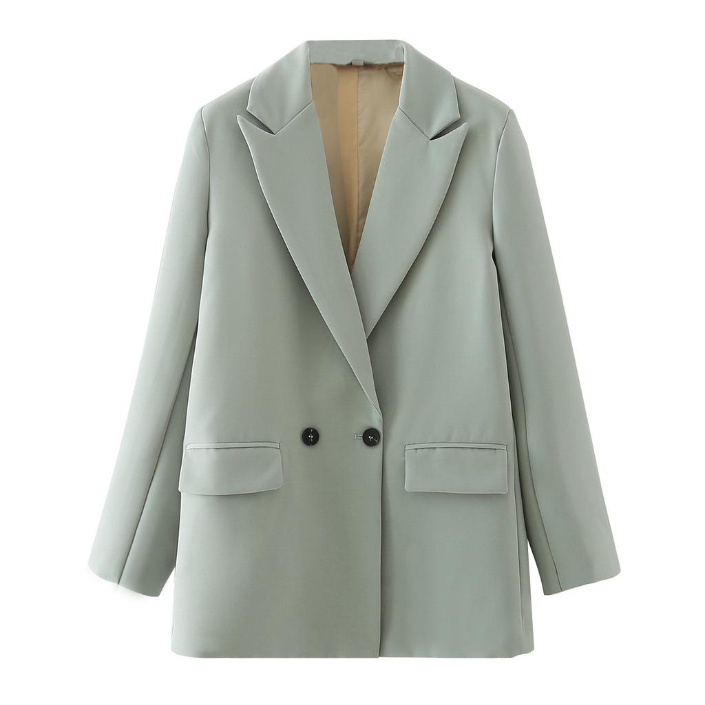 Женский Шикарный Блейзер Двубортный Винтажное Пальто Модный Воротник с Лацканами Длинный Рукав Женская Верхняя Одежда Стильные Топы Большого Размера