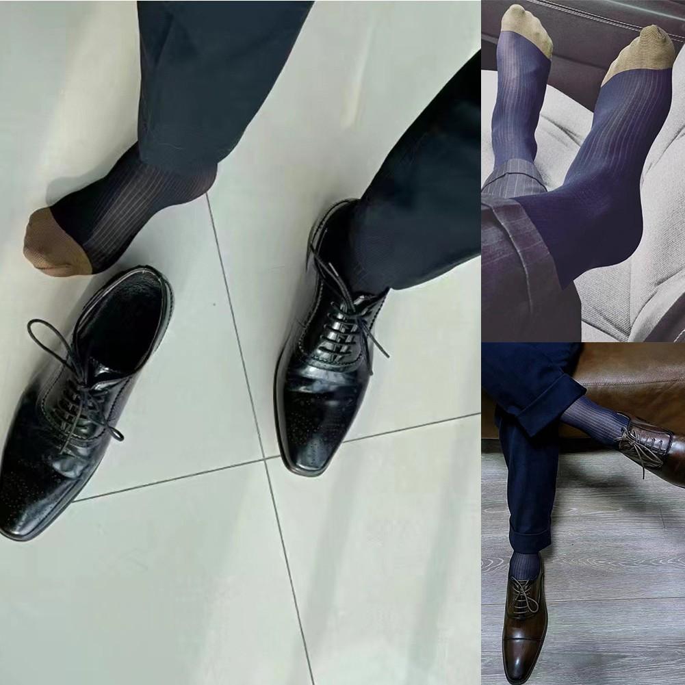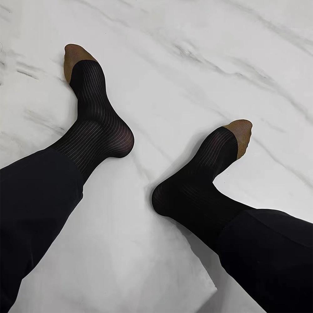 Шелковистые мужские носки в полоску, ультратонкие, дышащие, выше колена