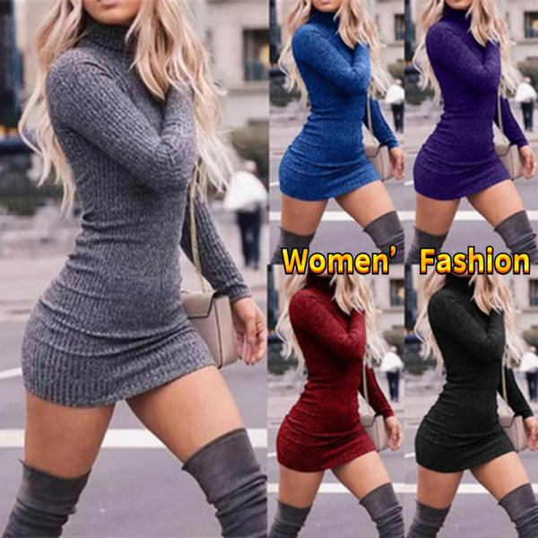Осень-зима выше колена, сексуальное женское мини-платье-свитер с длинным рукавом, однотонная водолазка, тонкий вязаный пуловер для женщин Hüftrock