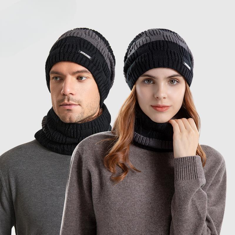 Вязаный пуловер, шапка, шарф, комплект из двух предметов, зимняя теплая защита ушей, один и тот же стиль для мужчин и женщин, шерстяная шапка