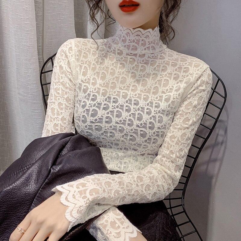 Блузки для женщин осень-зима кружево элегантная домашняя одежда женские рубашки топы с длинным рукавом изысканная одежда
