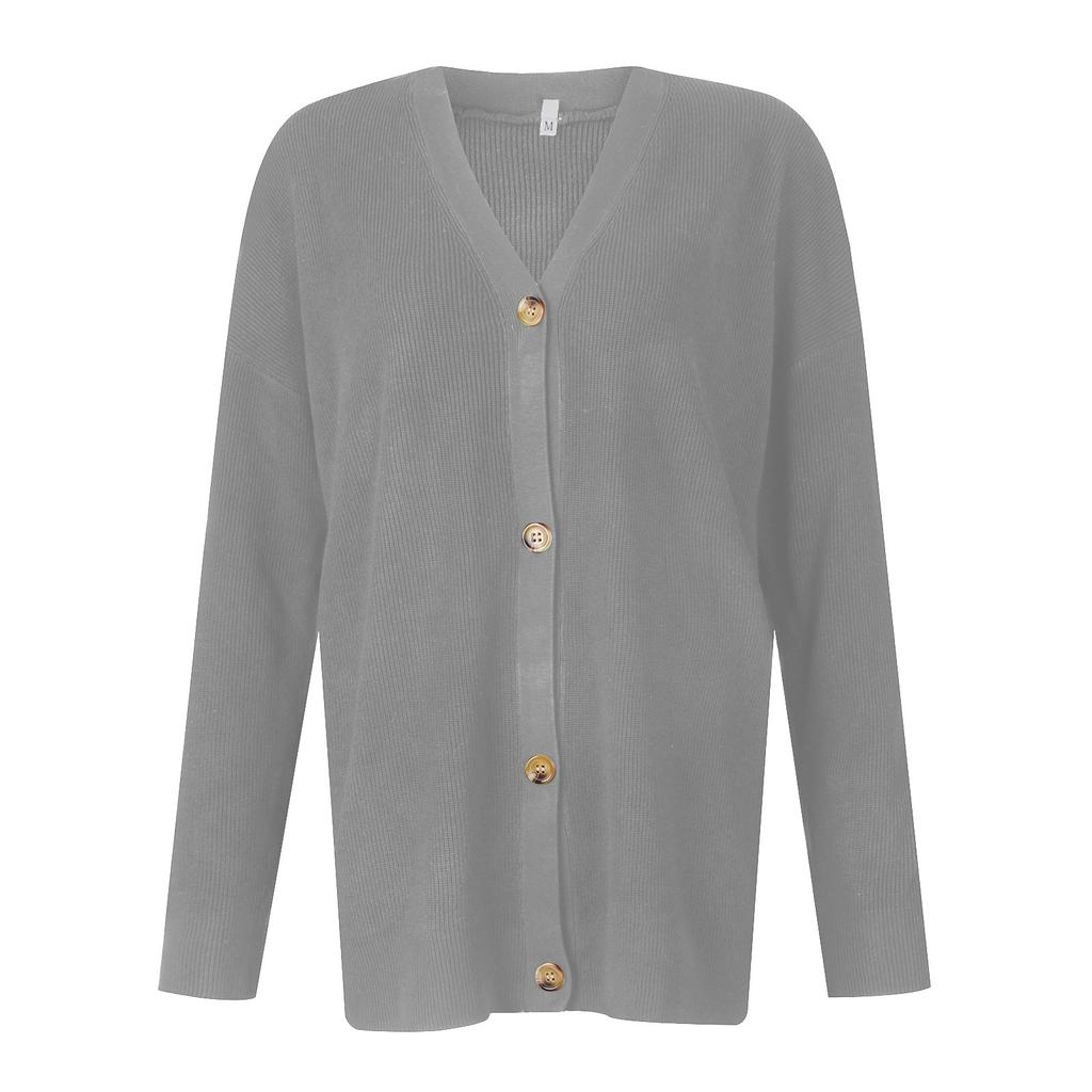 Женские кардиганы свитера осень свободные открытые спереди пуговицы V-образный вырез легкие кардиганы верхняя трикотажная одежда
