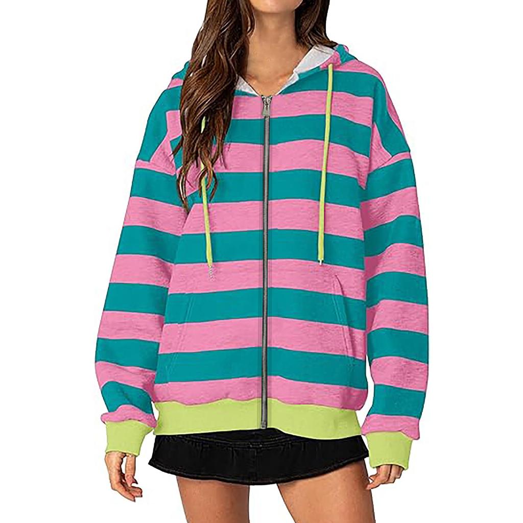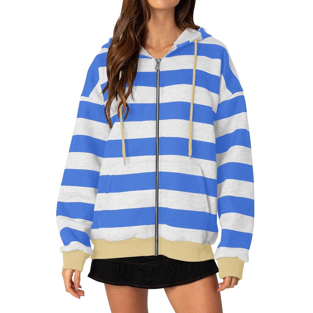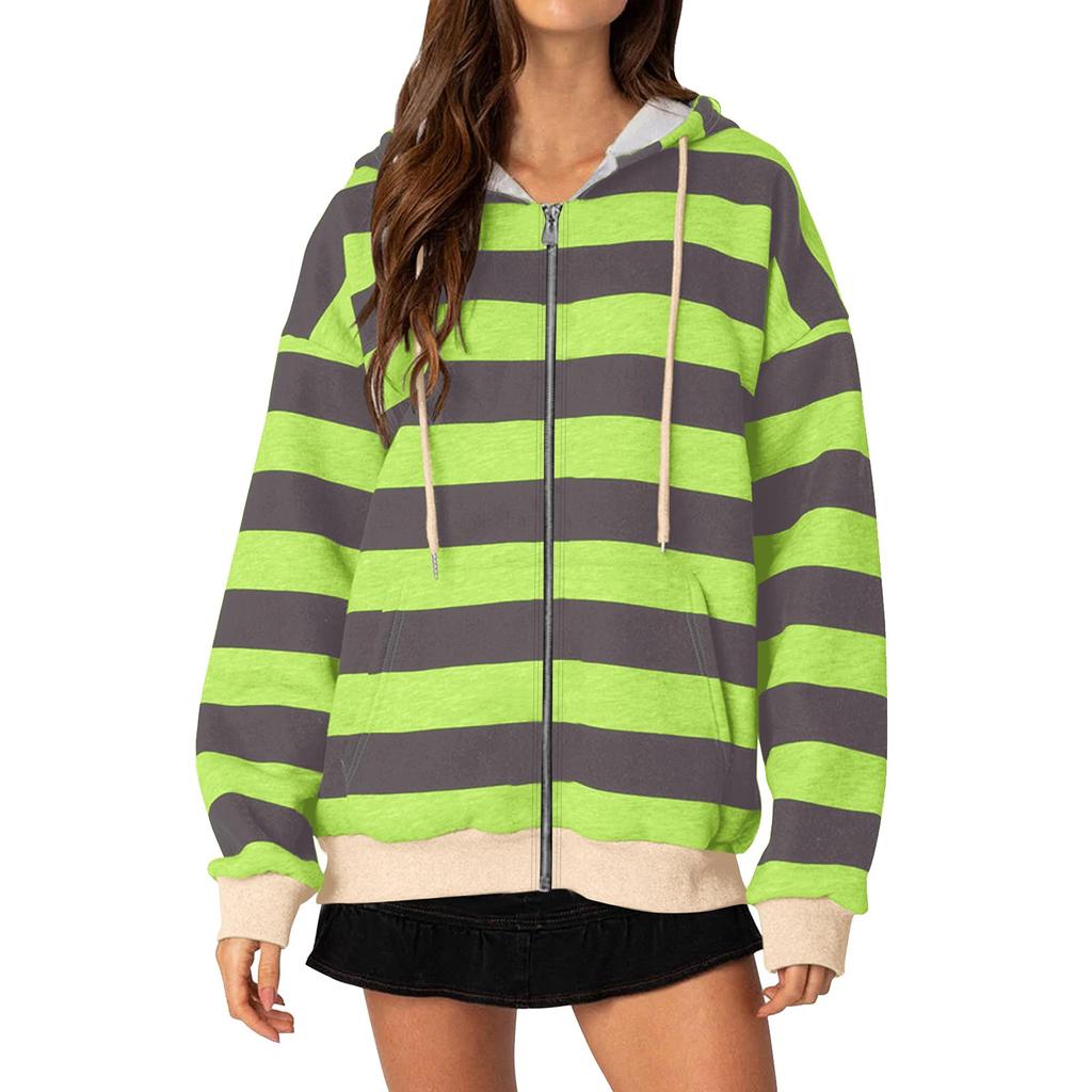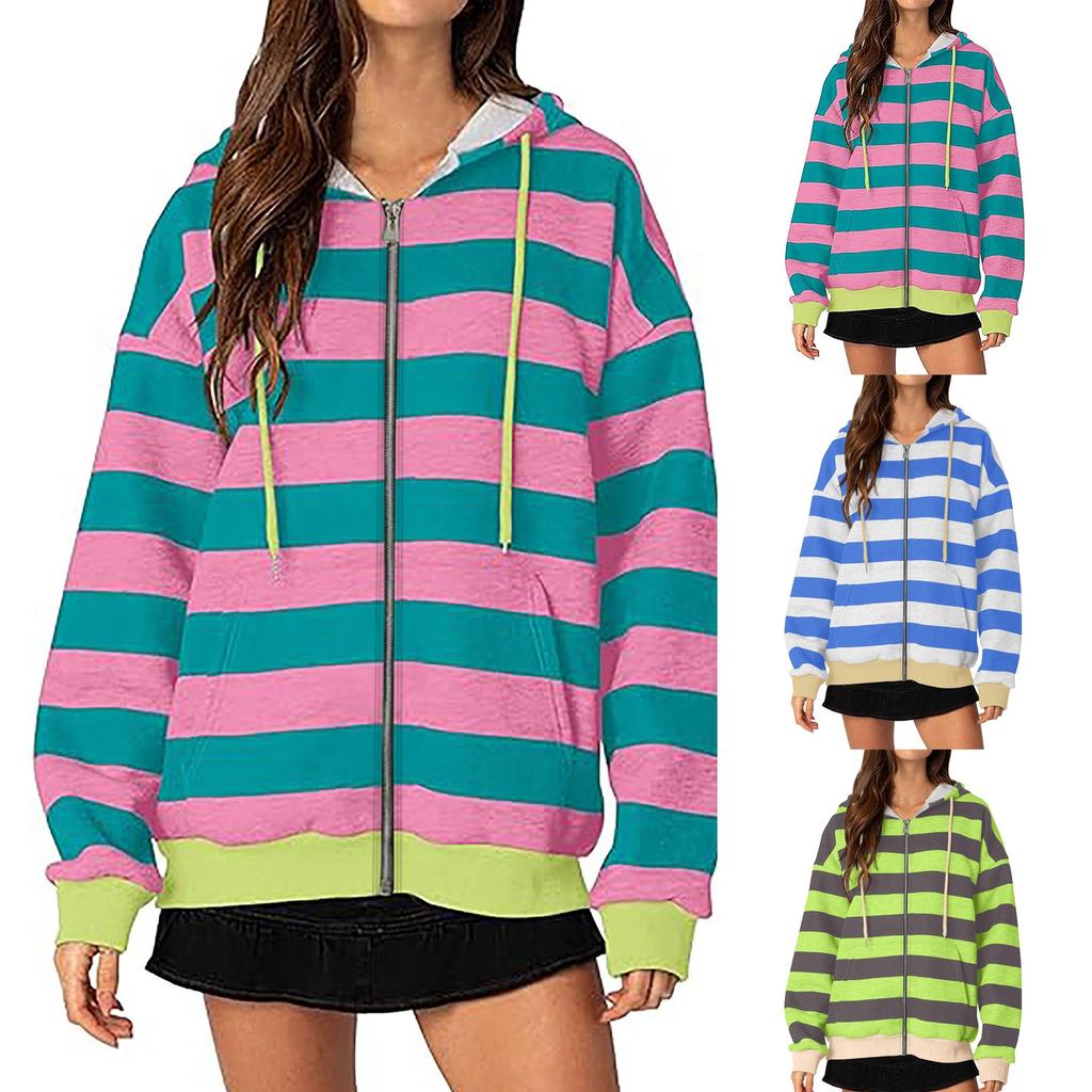 Женские повседневные топы, полосатая толстовка на молнии, толстовка с капюшоном