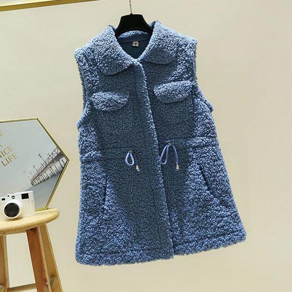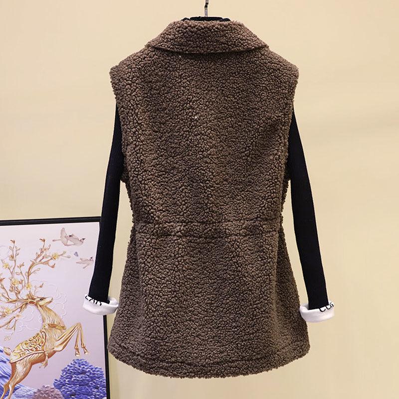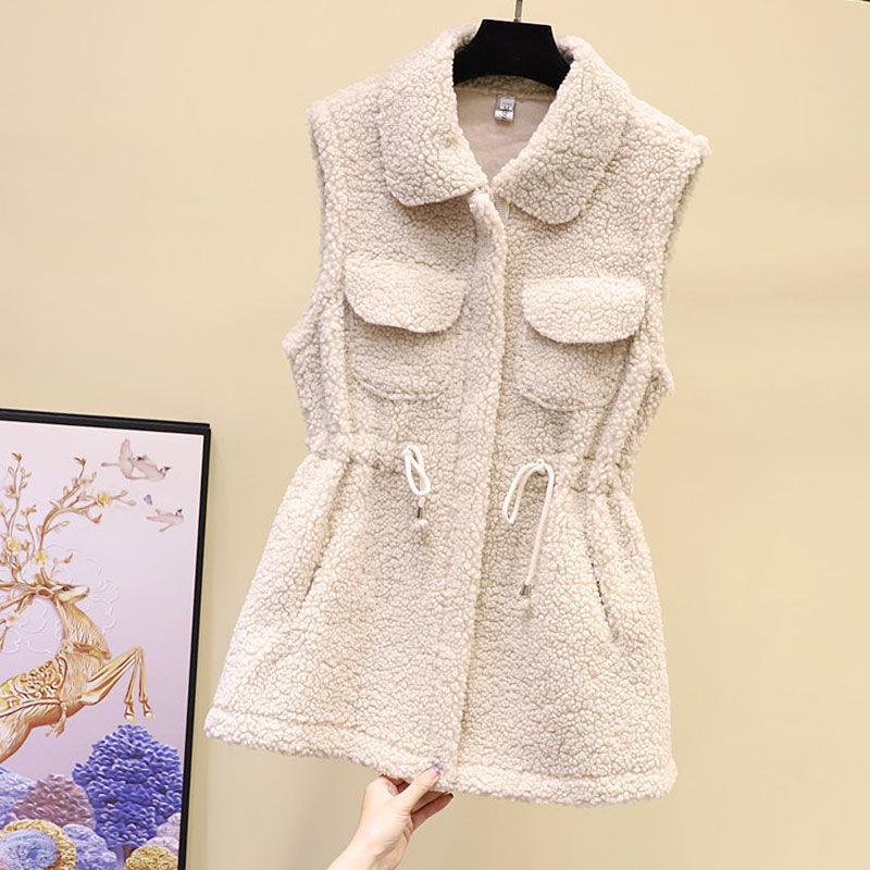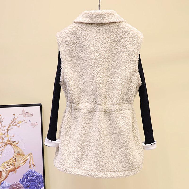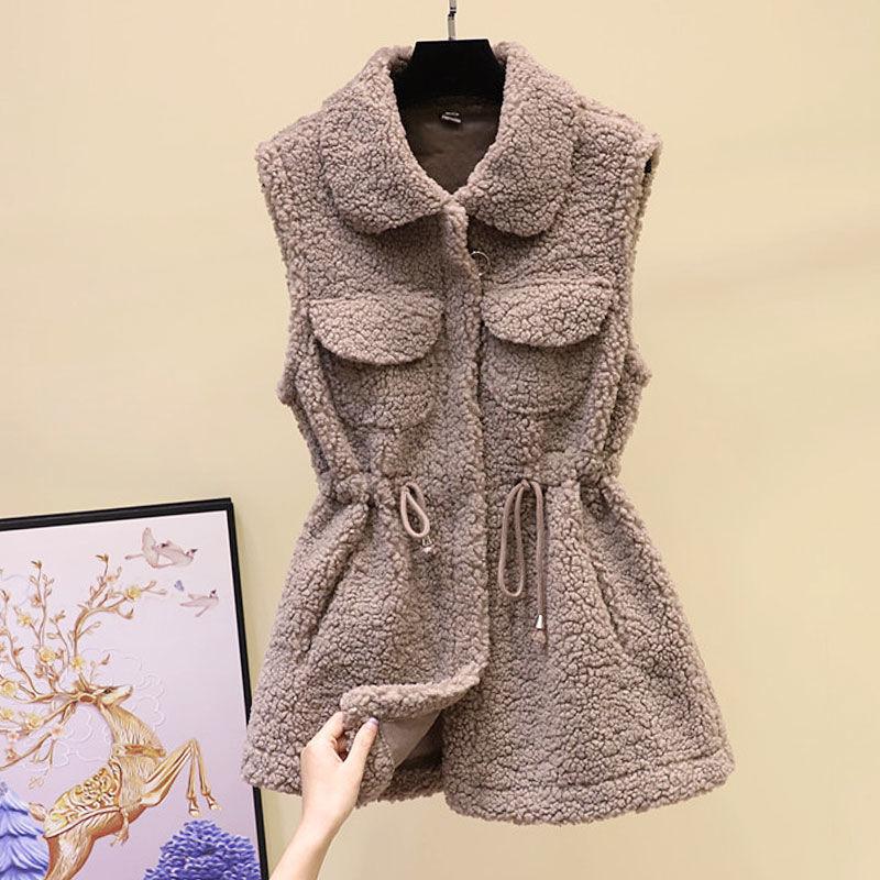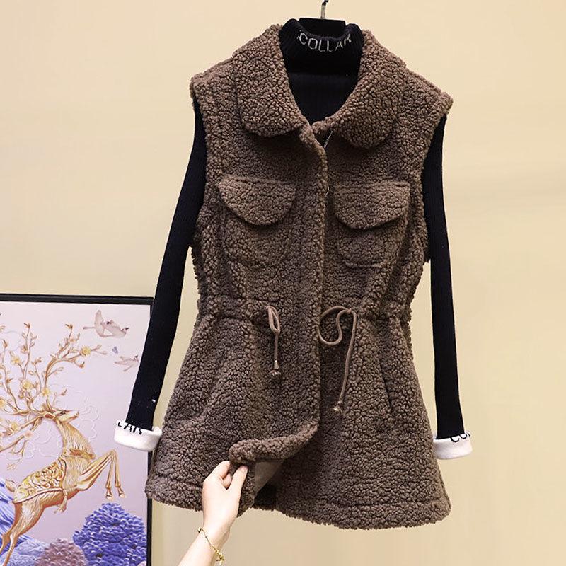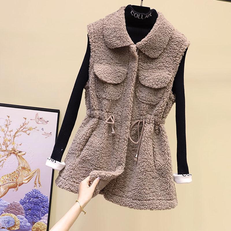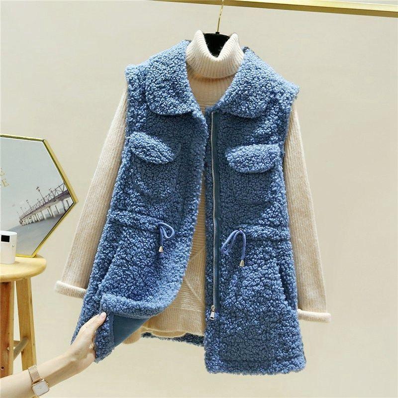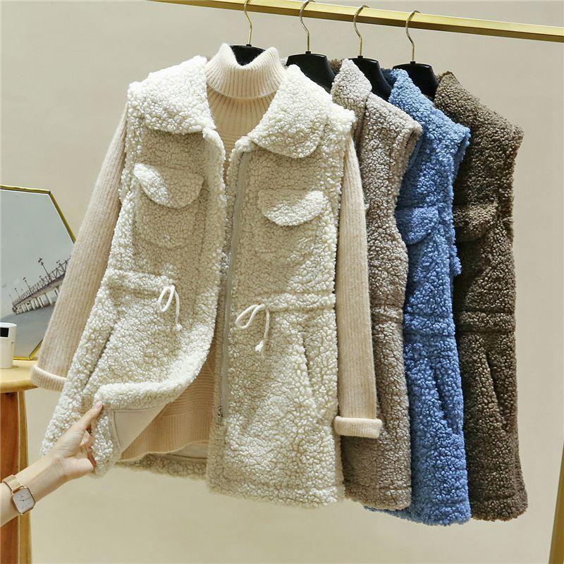 Жилет из овечьей шерсти, женская осенне-зимняя свободная верхняя куртка средней длины, однотонный свитер без рукавов с карманами