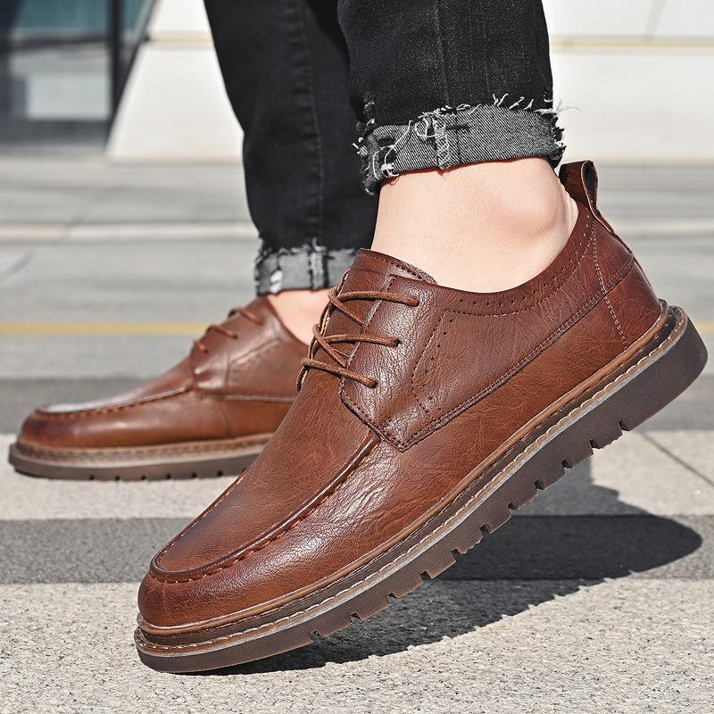 Весенние кожаные туфли мужские новые британские универсальные повседневные кожаные туфли для молодых мужчин