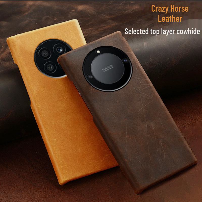 Honor X40 Чехол-полунакладка из натуральной кожи, задняя крышка из кожи crazy horse для защиты и стиля.