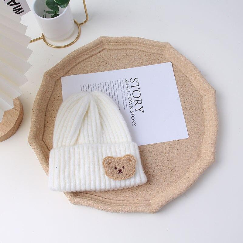 Милая вязаная шапка с медведем для малышей, однотонная мягкая удобная шапка для мальчиков и девочек с рисунком на осень и зиму, теплая детская вязаная шапка