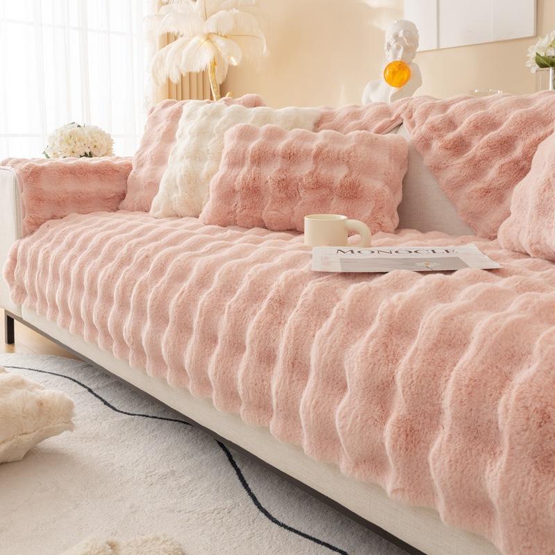 Длинная плюшевая подушка для дивана с имитацией кролика для зимнего тепла, утолщенная плюшевая, нежная и мягкая - подходит для нескользящих защитных чехлов для мебели