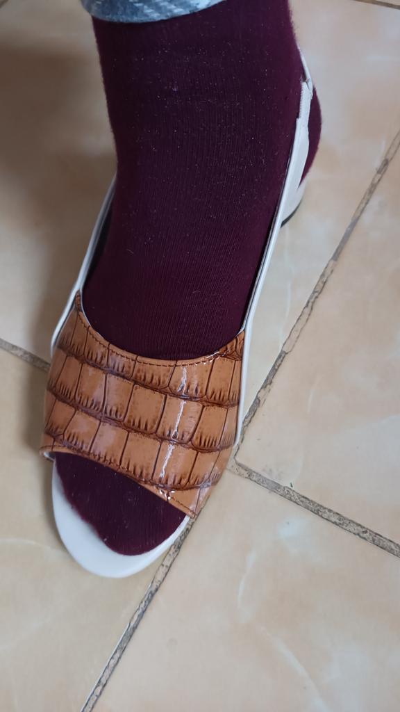 На русскую пожилую ногу средней полноты 39 размера подошел вычисленный по отзывам и заказанный 40.но плотно. Тютелька в тютельку.можно на лето и 41, но...этот разносится. Небольшой удобный каблучок. ОСНОВАТЕЛЬНЫЙ. Но в нём, вероятно, залит бетон или древние камни из китайской стены- невероятно тяжёлые !!! При этом пальцам как-то не очень красиво широко... И что заставляет напрячься ещё до начала летнего сезона носки-( хоть я и не обувщик) - НО ЗАЧЕМ ПОД САМОЙ ХОДОВОЙ ЧАСТЬЮ ,ПОД МЫСКОМ НА ВНУТРЕННЕЙ ЧАСТИ ПОДОШВЫ ДЕЛАТЬ ШОВ/ СТЫК !!!! НЕРАЗУМНО!!!!!