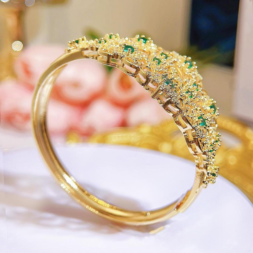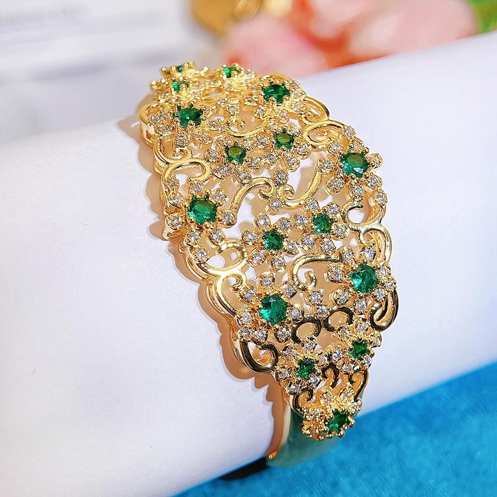 CMM Стиль барокко Европейский ретро Итальянский шлифованный ручной работы Золотой полый этнический западный цветной циркон женский браслет