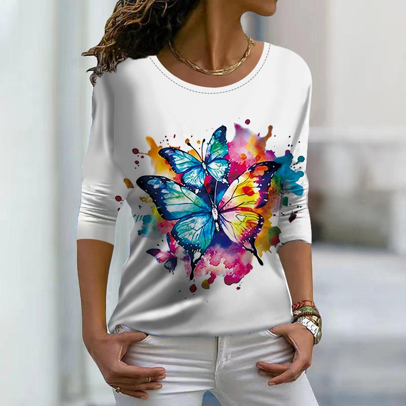 Женские осенние топы, свободные белые бабочки с принтом, повседневная футболка с длинным рукавом, топ, блузка — купить товар онлайн с бесплатной доставкой по всему миру!
