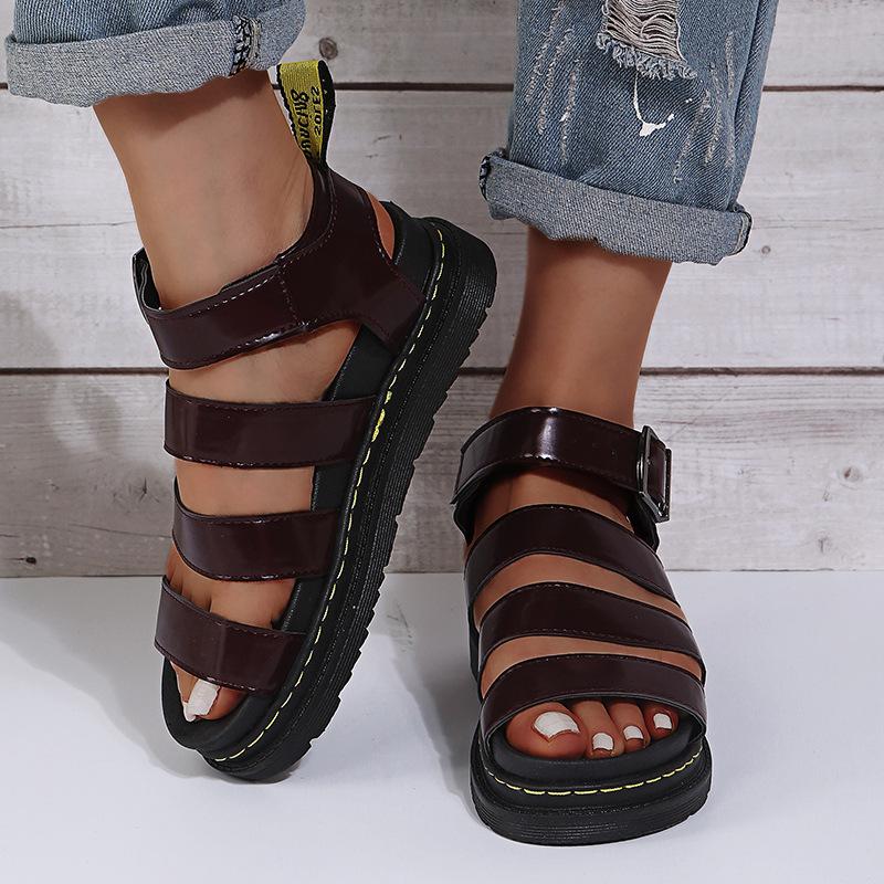 Женские сандалии в римском стиле, пляжная обувь с открытым носком, сандалии на толстой подошве с открытым носком, удобные повседневные сандалии