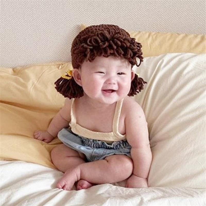 Милая шапочка-бини для новорожденных девочек, косплей, коса, парик, шапка, зимняя теплая вязаная шапка для детей и девочек, шапки и кепки, реквизит для фотосъемки
