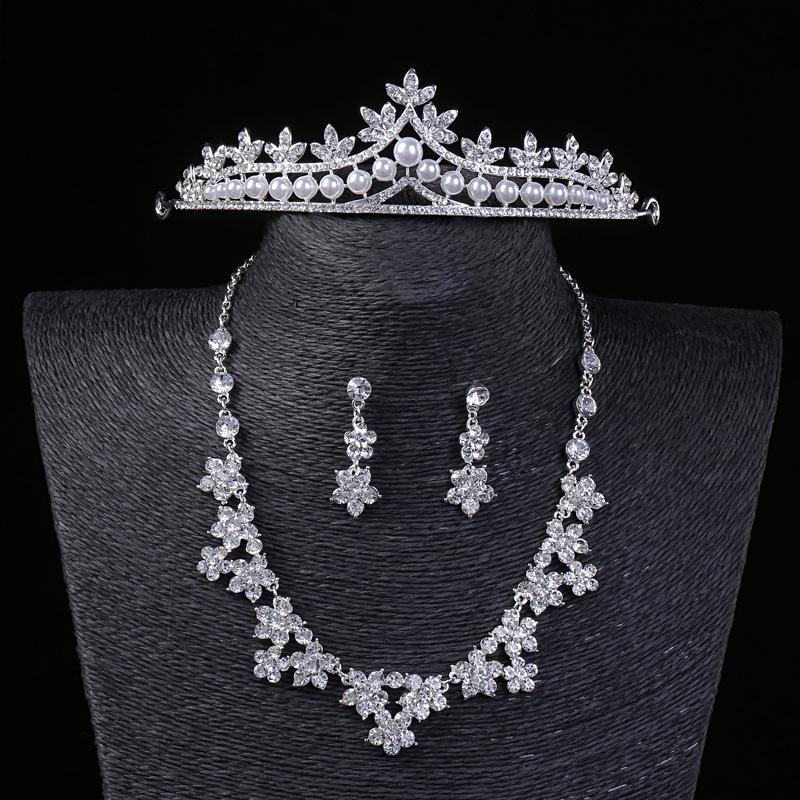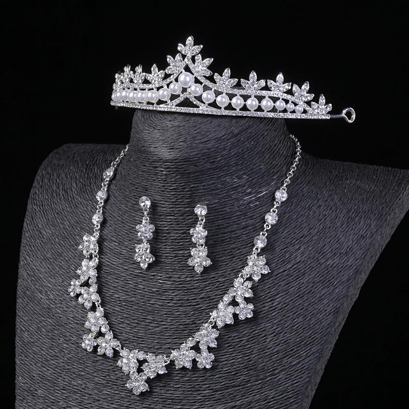 Новое свадебное ожерелье из трех предметов со стразами, свадебная корона, корейская хрустальная тиара ручной работы