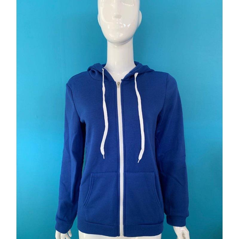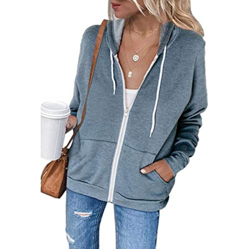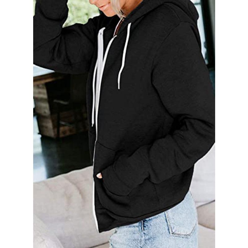 Осенняя женская однотонная утолщенная толстовка на молнии с длинными рукавами и карманами на шнурке с капюшоном