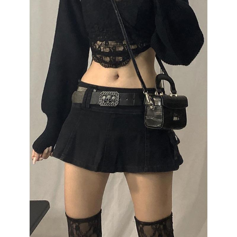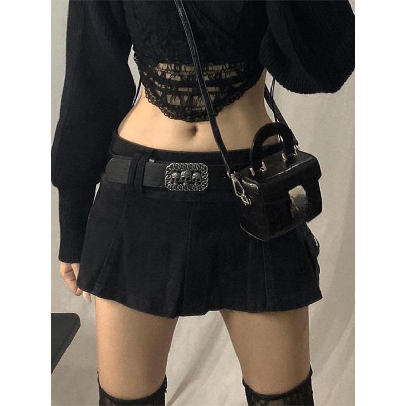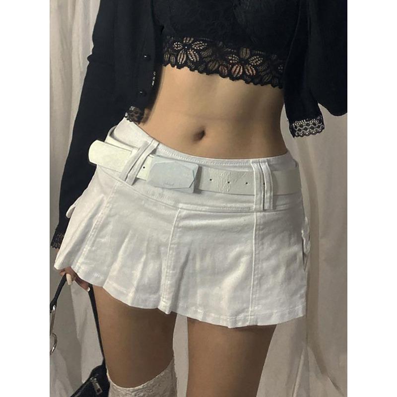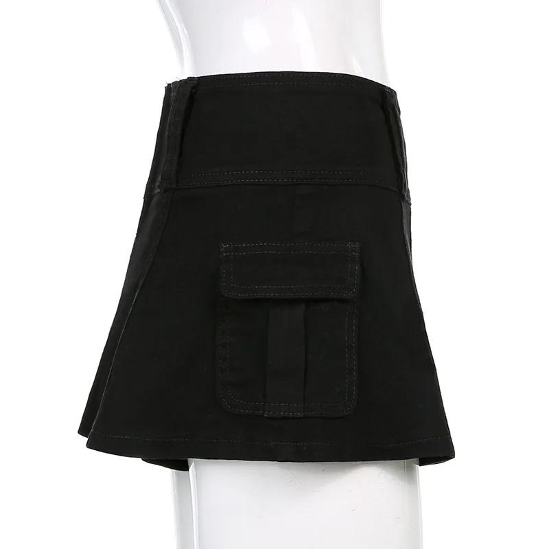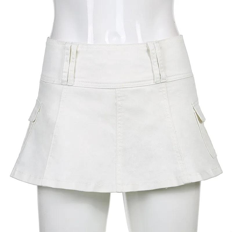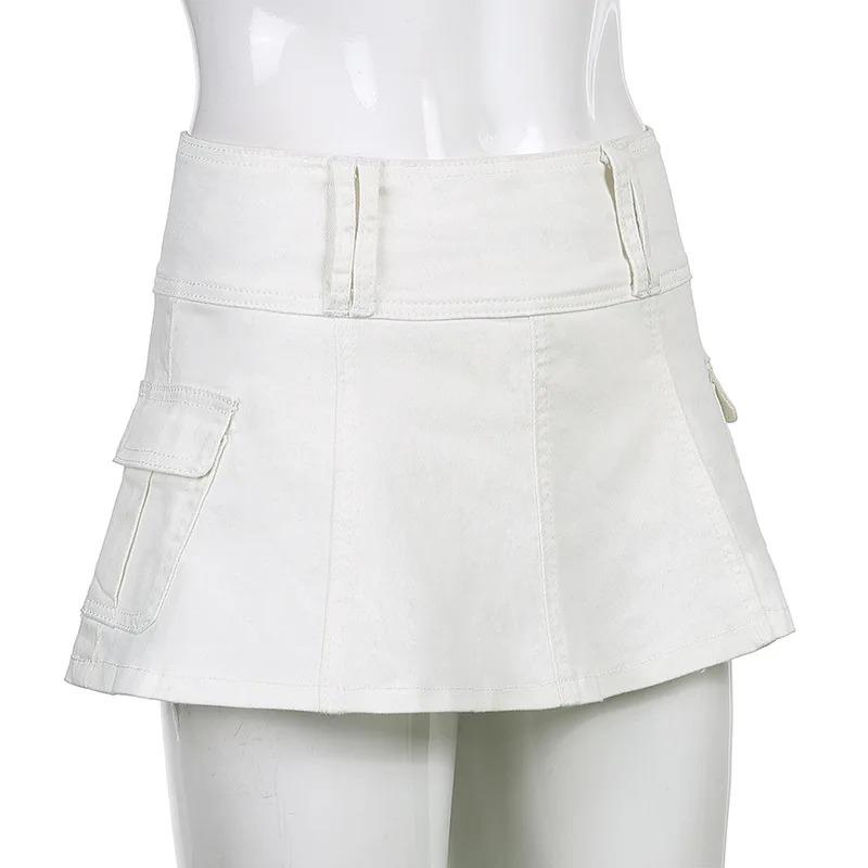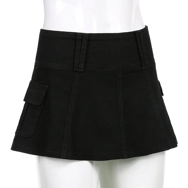 Пастельные готические микро-юбки с низкой талией Y2K, уличная одежда, карманы Acubi, лоскутная юбка трапециевидной формы, Эстетическая одежда для девочек, на молнии