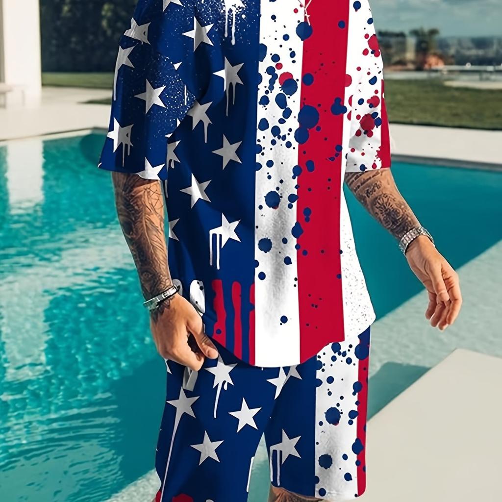 Мужская футболка и шорты с графическим принтом флага США больших размеров для летнего отдыха на открытом воздухе/спорта, комплект из 2 предметов — купить товар онлайн с бесплатной доставкой по всему миру!
