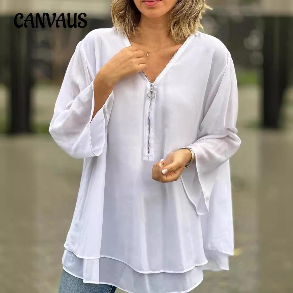 Женская блузка больших размеров с v-образным вырезом, повседневный топ, свободный повседневный топ с металлической молнией